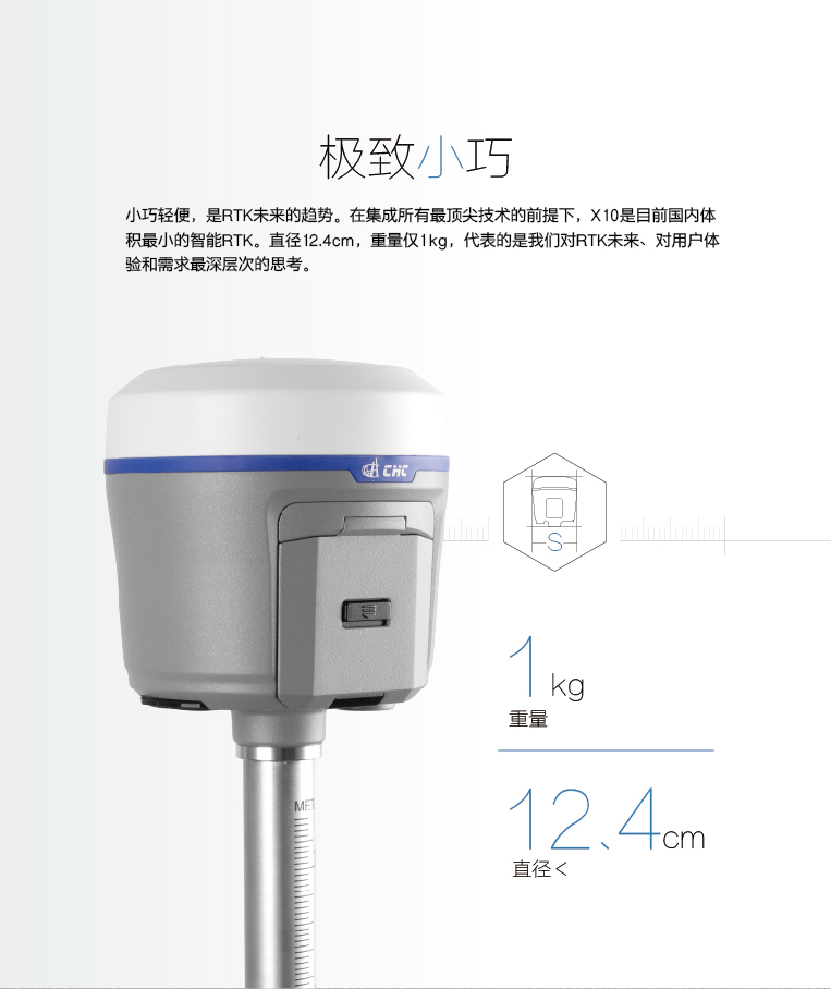華測X10 智能RTK,是RTK領(lǐng)域內(nèi)的一次大膽的進(jìn)化。它精致小巧但大有可為,快速精準(zhǔn)的測量,堅固抗摔的材質(zhì),持久耐用的續(xù)航,和智能強(qiáng)悍的配置,為用戶帶來全新的測量體驗。